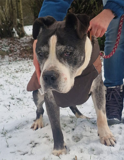Der Amstaff Rüde gibt die Hoffnung nicht auf, dass rassekundige Menschen die Freude an Charakterhunden haben ihn entdecken, liebhaben und adoptieren.