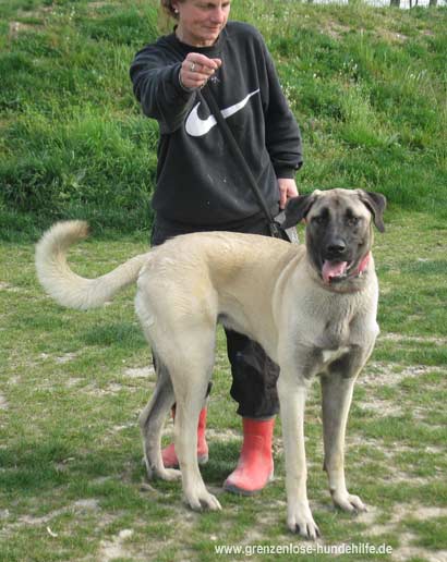 Die Kangalhündin Isis wurde gefunden. Der Tierarzt hat sie auf ca. ein Jahr geschätzt.