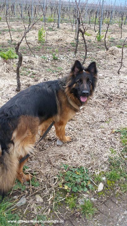 Die Hündin lebte zusammen mit Kindern. Wie sich schnell auf den ersten Gassirunden herausstellte besitzt die Schöne auch einen guten Grundgehorsam.
