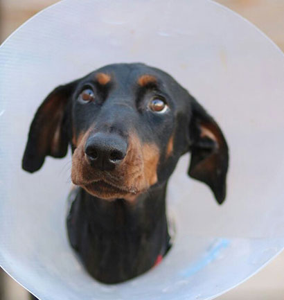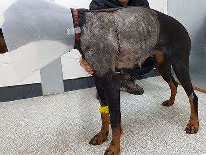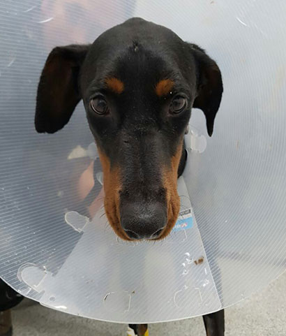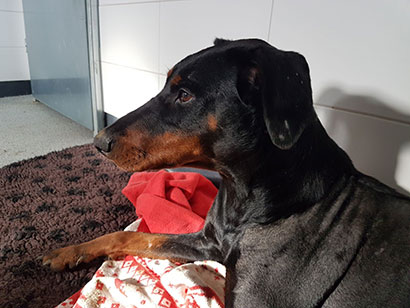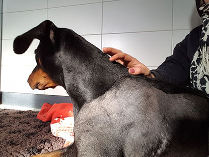 Die Dobermann Hündin Ivory musste als Supernotfall in die Tierklinik gebracht werden.