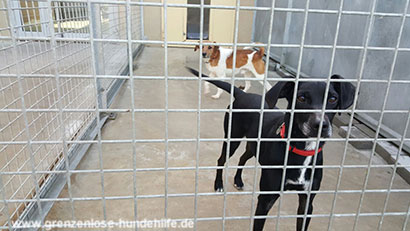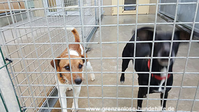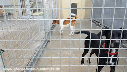 Auch seine Zwingerkollegen Heidi und noch ein weiterer Rüde können Jack nicht richtig aufmuntern.