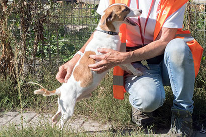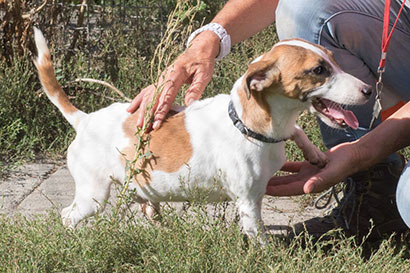 Während des Spaziergangs zeigt sich Jack als einen sehr angenehmen Begleiter. Er läuft entspannt an der Leine, hat mit Artgenossen keine Probleme und geniesst den Ausflug sichtlich. Die Leckerlis hat er gerne angenommen, er hatte richtig Hunger.
