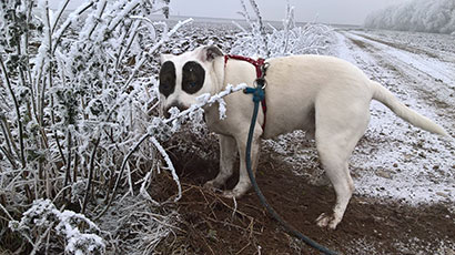 Auf der einen Seite kann er sich beim Spaziergang austoben, buddeln und halbe Baumstämme schleppen und andererseits ist er Menschen gegenüber wieder verschmust und anhänglich.
