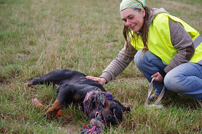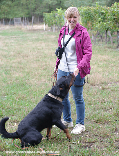 Jaiko bleibt mit uns in Kontakt, sucht unseren Blick, ist bei den Menschen. Wir haben das Gefühl, dass Jaiko ein guter Suchhund werden kann.