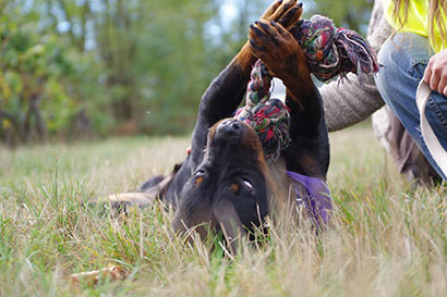 Natürlich tollen wir auch übermütig auf der Wiese herum, denn Jaiko spielt sehr gerne.
