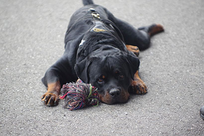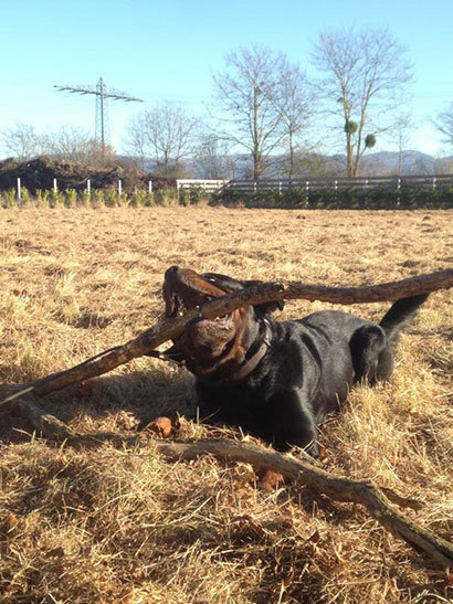 Mangels Bewegung und Auslastung hat sich der hübsche Rottibub immer wieder selbstständig gemacht und ist alleine spazieren gegangen.