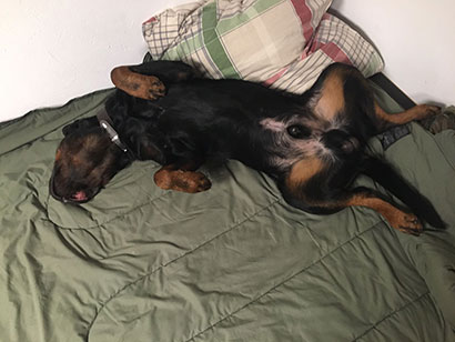 Mal zu Füssen, mal auf der, extra für ihn hergerichten, Matratze.