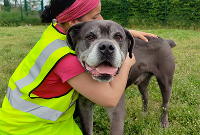 Wenn es uns möglich ist gehen wir mit ihm außerhalb von den üblichen Gassiwegen und setzen uns, umgeben von Ruhe, mit ihm hin und schmusen ganz fest mit ihm.