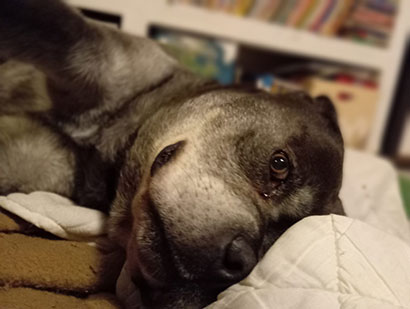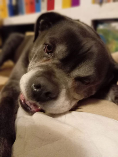 Obwohl wir denken, dass Jalco keine Schmerzen mehr haben kann, so hebt er doch so manches Mal seine Pfote, wie früher, an.