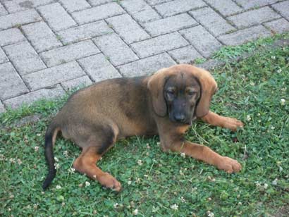 Laut beigefügtem Zettel ist James´s Mutter eine reinrassige Rouge de Bavière übersetzt Bayrischer Gebirgsschweißhund. Der Vater sei unbekannt.