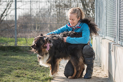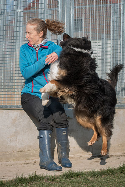 Im Freilauf saust er umher, macht Freudensprünge und freut sich riesig, wenn man ihn zum Spaziergang abholt.