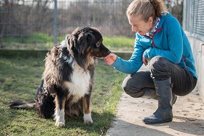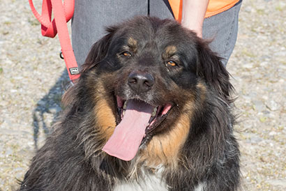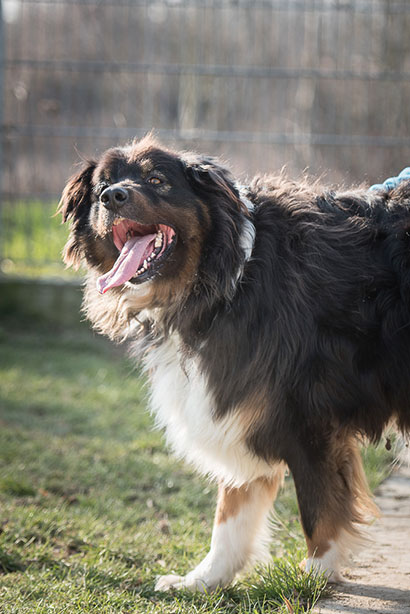 Grundkommandos kennt er und führt diese mit Spass und Freude aus. Lobt man ihn, schaut er einen stolz an. Aufgrund seines Gewichtes und seiner Freudensprünge, suchen wir eine Familie mit grösseren, standfesten Kindern.