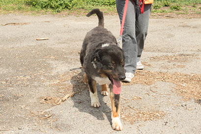 Dass er bei seinem ehemaligen Besitzer nicht genügend Beschäftigung und Bewegung hatte, sieht man auf den ersten Blick, Jamy hat einige Kilos zu viel.