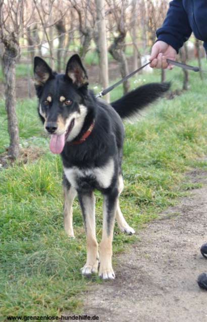 Die kastrierte Schäferhund - Huskymix Hündin Janna bleibt nicht gerne alleine.