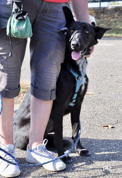 Janou ist fremden Menschen gegenüber anfangs vorsichtig, sobald sie jedoch Vertrauen gefasst hat, sucht sie Menschenkontakt und krabbelt sogar auf den Schoß der Gassigeher.