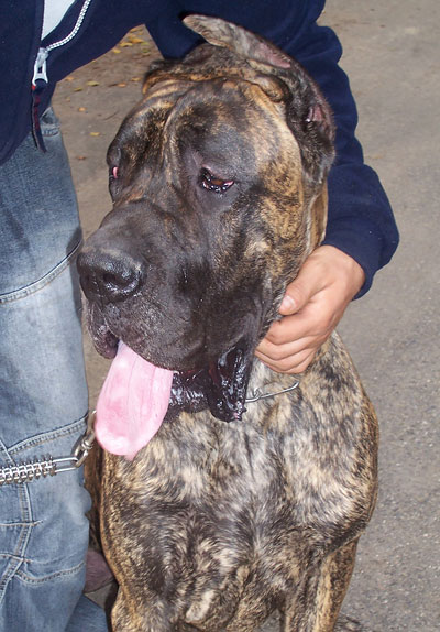 Vertreter seiner Rasse, den deutschen Doggen. |