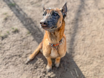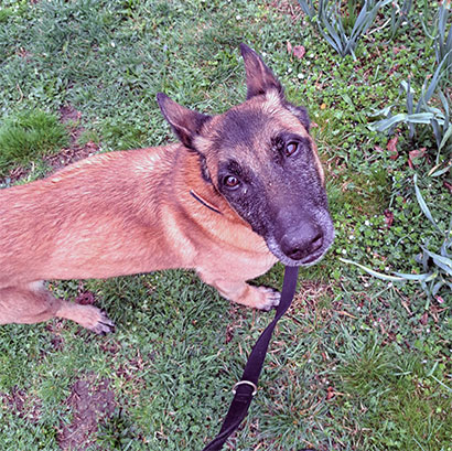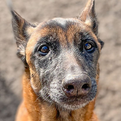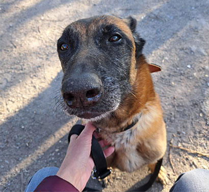Nach dem Tod ihres Besitzers fand man die fast 11jährige Malinois Hündin Jazzy im Haus und brachte sie ins Tierheim.