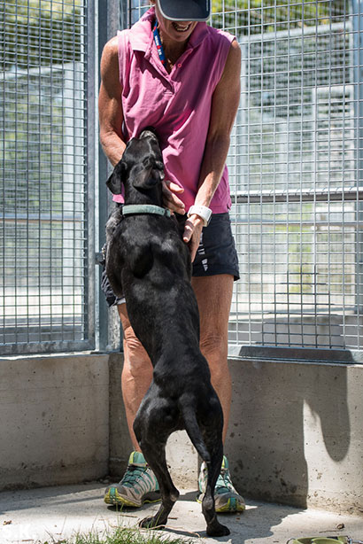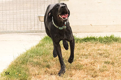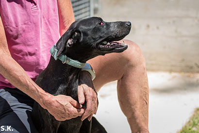 Sie liebt Menschen und begegnet Artgenossen stets freundlich, ihrem Alter entsprechend, manchmal etwas stürmisch.