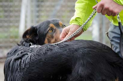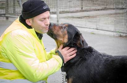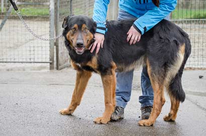 Der Beauceron Mix Rüde Jerry wurde gemeinsam mit seinem Bruder Tom gefunden.