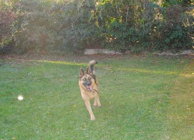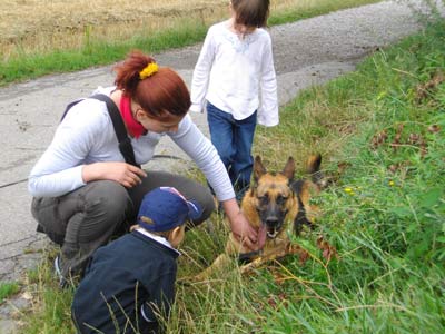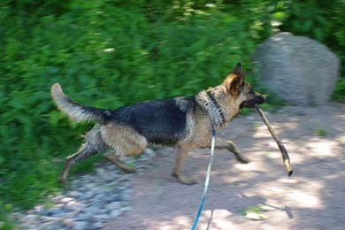 Na ja, andere Hunde magst du nicht, aber wenn du beschäfigt bist so können sie an uns vorüber gehen. Du schenkst ihnen kein Interesse. Du bist sehr gelehrig und hast auch Spass daran. Mit uns Menschen hast du überhaupt keine Probleme. Wenn ich dich dann wieder an die Leine nehmen muß, so gehst du ganz ruhig.