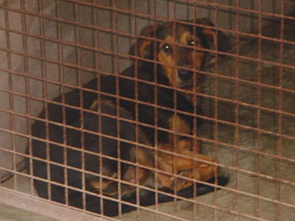 Jette ist eine zierliche, braunschwarze Mixhündin,