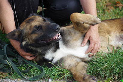 Joe liegt auf dem Rücken, legt sich in meine Arme und will immerzu schmusen und gestreichelt werden. Ich gehe davon aus, dass er sich hier sicher fühlt und deshalb richtig Entspannen kann!