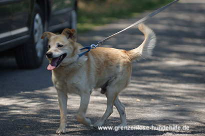 Johnny besitzt einen gewissen Grundgehorsam und hat kein Problem im Auto mitzufahren.