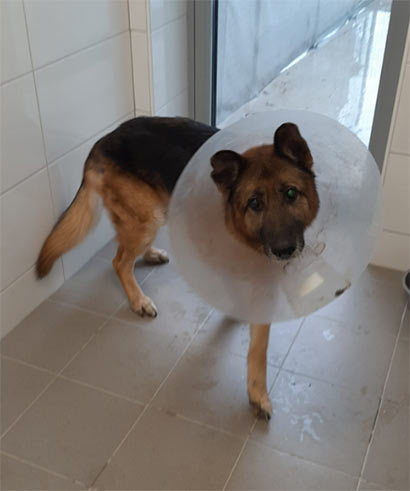 Johnny wurde sogleich operiert und die stinkende Umfangsvermehrung am linken Ellbogen entfernt sowie die zwei Wunden hinten versorgt.