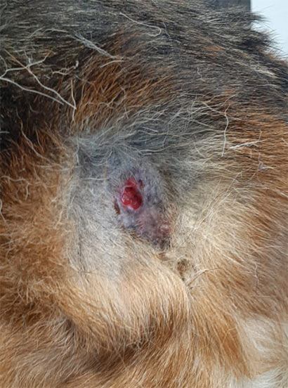 Seine golfball große Umfangsvermehrung am Ellebogen war, wie schon befürchtet, ein Fibrosarkom, welches zum Glück vollständig entfernt werden konnte!