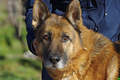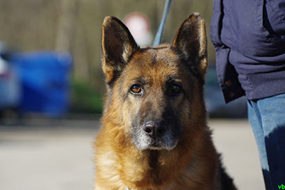 Der wunderschöne und liebe deutsche Schäferhund Opa Johnny wurde in einem schlechten Zustand im Tierheim abgegeben. Sehr dünn und mit einer offenen Wunde am Ellbogen, die bestialisch stank.