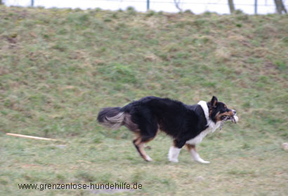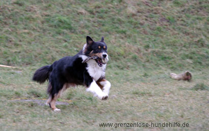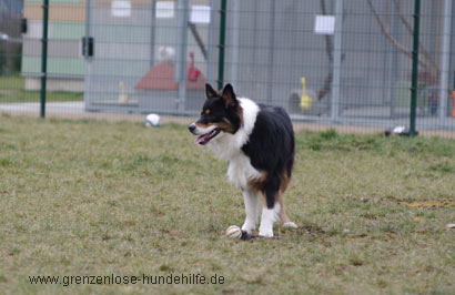 Der junge Rüde ist freundlich, bildschön, sehr verspielt und hatte Spass daran mit uns im Freilauf rumzutoben.