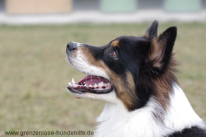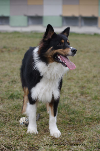 Der gepflegte Australian Sheperd Rüde Joker wurde wegen Überforderung im Tierheim abgegeben.