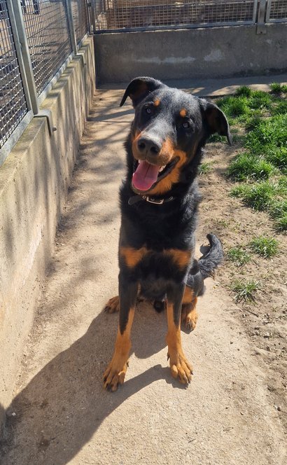 Joker ist ein lieber, 1 Jahre alter Beauceron Rüde der ausgesetzt wurde. Der Mann, der ihn auf der Strasse aufgefunden und ins Tierheim gebracht