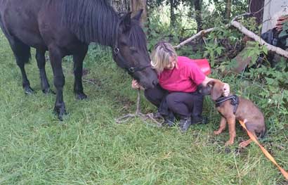 | Joyce und James beim kennenlernen eines Pferdes! |