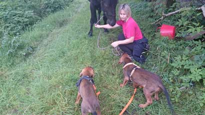 Die Beiden kennen andere Hunde und auch Katzen, sind mit diesen vorsichtig.