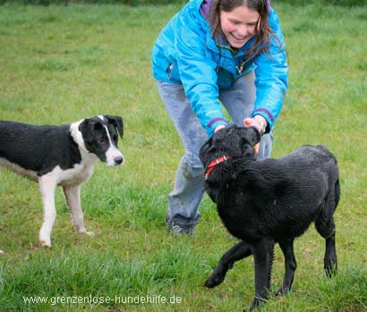 Damit es für die jungen Hunde nicht so schrecklich langweilig und nachts einsam ist dürfen Victor und Joyce sich den Zwinger teilen...
