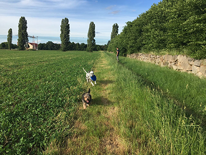 Er rennt und springt, wälzt sich im Gras und ich muss ihn eher immer bremsen ;-(.