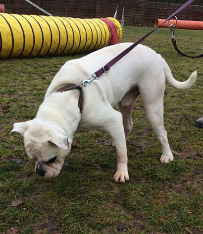 Er muss lernen die Reize der Umwelt zu sortieren und mit Stress umzugehen, auch Hundebegegnungen werden geübt.