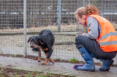 Als ich zu Ihr in den Zwinger bin brauchte ich ein wenig Geduld bis Sie vorsichtig zu mir kam und ich Sie anleinen durfte.... Draussen läuft sie gut an der Leine aber Sie reagiert ängstlich sobald wir auf viele Menschen treffen.