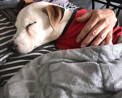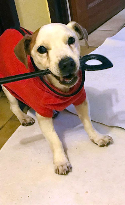 Dies ist evtl. den Umständen seines Aussetzens und der stressigen Situation im Zwinger des Tierheims geschuldet, denn er ist immer da, wo sein Pflegefrauchen ist und er hängt wie ein Magnet an ihr.