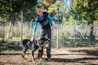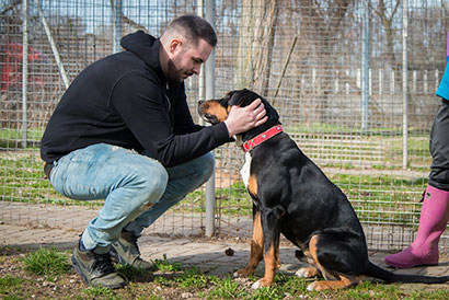 Wenn man mit Karabas spazieren geht, merkt man gleich, was für ein Kraftpaket er ist und dass er leider nie richtig gelernt hat, an der Leine zu laufen, zeitweise zieht er stark.