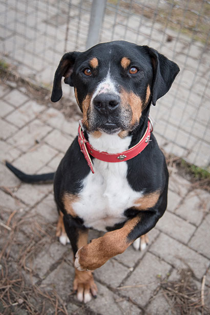 Der 5jährige schöne Mischlingsrüde wurde im Tierheim abgegeben.
