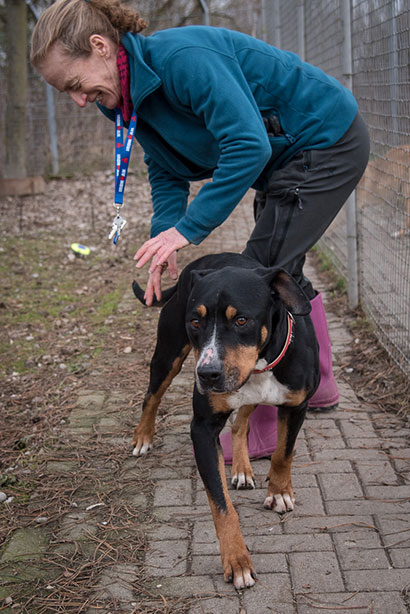 Er muss einfach alles beschnüffeln und erkunden, man kann es ihm nicht übel nehmen, in seinem kahlen Zwinger ist er einfach total unterfordert und gelangweilt.