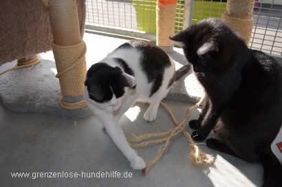 Sie freut sich immer sehr, wenn sich jemand mit ihr beschäftigt. Sie springt übermütig im Katzengehege herum und spielt sogar mit Prince .