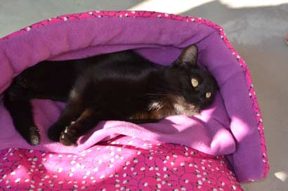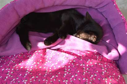 Agathe hat sich gleich in die Höhle gelegt und sich rein gekuschelt, man hatte wirklich den Eindruck sie weiß, dass die Sachen für sie sind. ;-)
