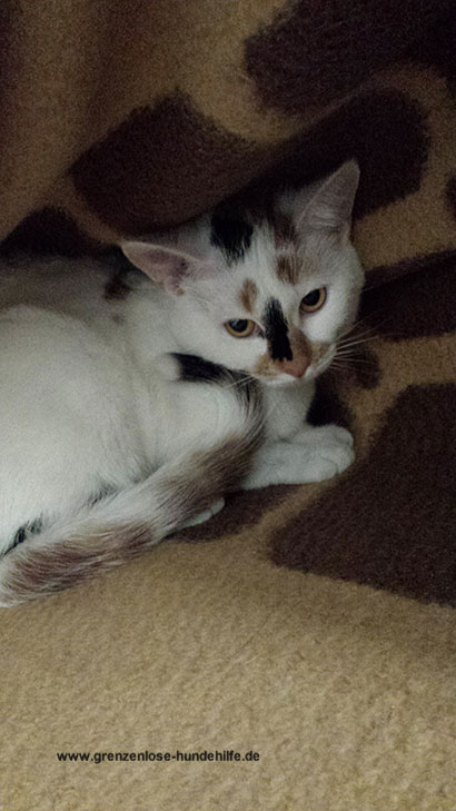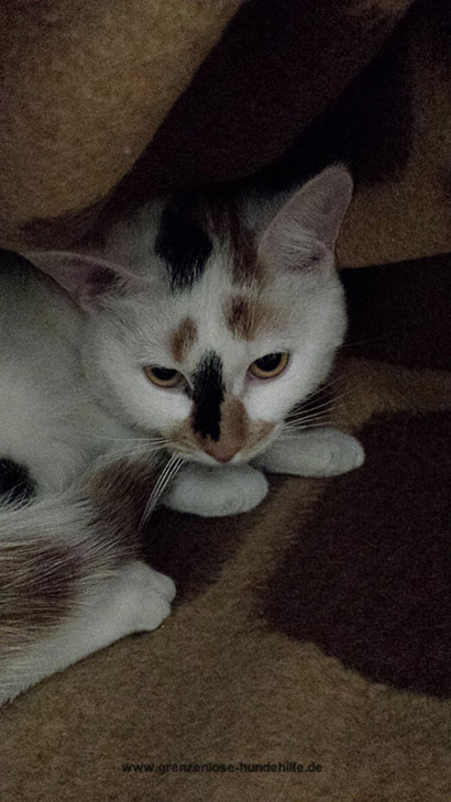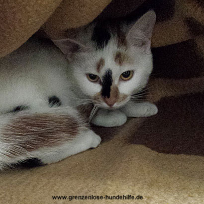 Auch Sie ist sehr ängstlich und versteckt sich die meiste Zeit unter einer Decke.