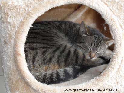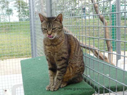 | Aline ist ein ganz liebes Tigermädel. Sie schmust immer mehr, aber leider meldet sich niemand für sie. |