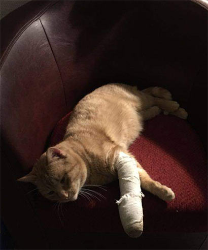 Der hübsche Anatole wurde gefunden und es stellte sich heraus, dass der Bub eine gebrochene Pfote hatte. Inzwischen ist er operiert und lebt auf einer Pflegestelle.