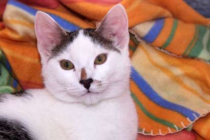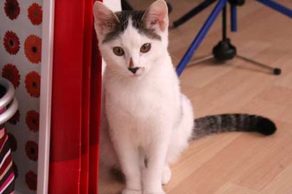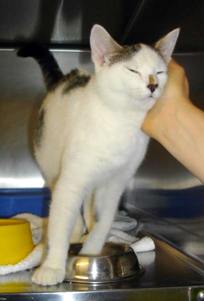 Der liebe und verschmuste halbjährige Kater Angel hat eine Unterschenkelfraktur und ein getrübtes Auge.