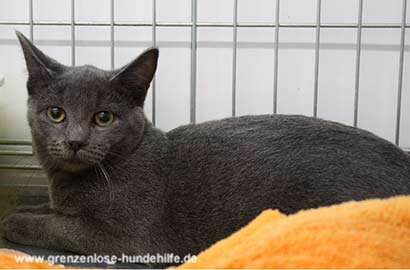 Angie ist eine sehr hübsche etwas schüchterne Kartäusermischlingsdame.